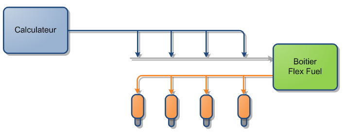 Le circuit de puissance interne au calculateur est ainsi toujours utilisé. Un simple micontroleur fait alors l'affaire, sa tension d'alimentation etant en plus directement disponible dans le calculateur.